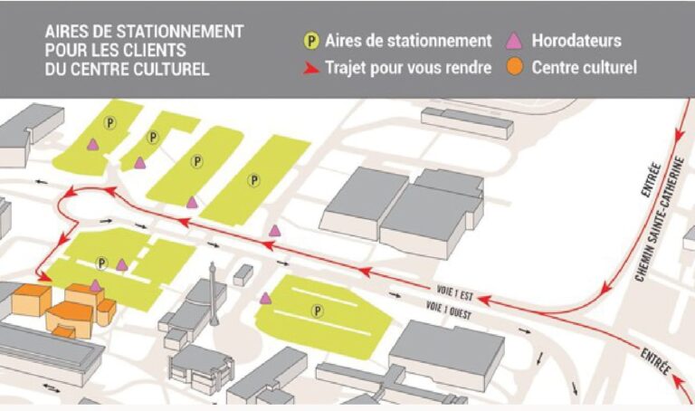 Lors des journées de spectacle, pour les spectateurs seulement, le Centre culturel offre le permis de stationnement à 5 $ . Ce permis doit être déposé bien en évidence sur le tableau de bord de votre voiture.