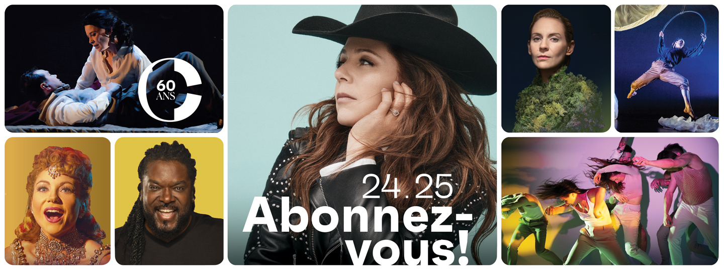 *Possibilité d’échanger un spectacle de votre série contre un autre de la série À la carte dès le 5 juin 2025. Non applicable sur les séries Danse et Cirque. Frais d’échange de 5 $ au guichet et 9 $ par téléphone. L’échange doit obligatoirement être effectué au minimum 14 jours avant la date du spectacle.